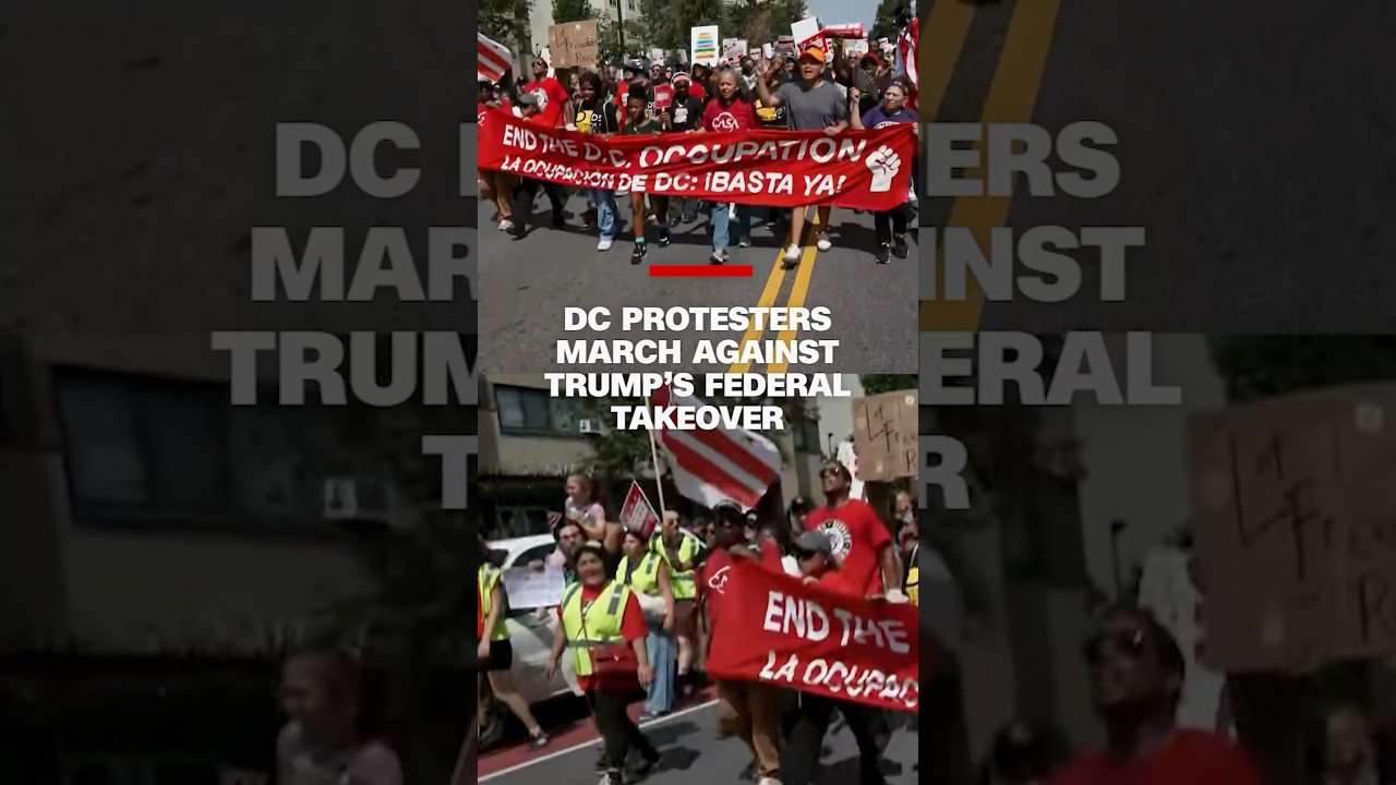 Participants in the “We Are All DC” march journeyed from Meridian Hill Park to Freedom Plaza near the White House in Washington, DC. The protest follows President Donald Trump’s declaring a crime emergency in the capital in August and deployment of National Guard troops to the capital. #cnn #news #shorts